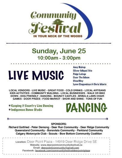 Join in on the fun at Deer Point Plaza (No Frills, Big T’s BBQ, Cornerstone Café) This is great fun featuring local musicians, artisan and vendor tables, free kids activities, dancing and much more!